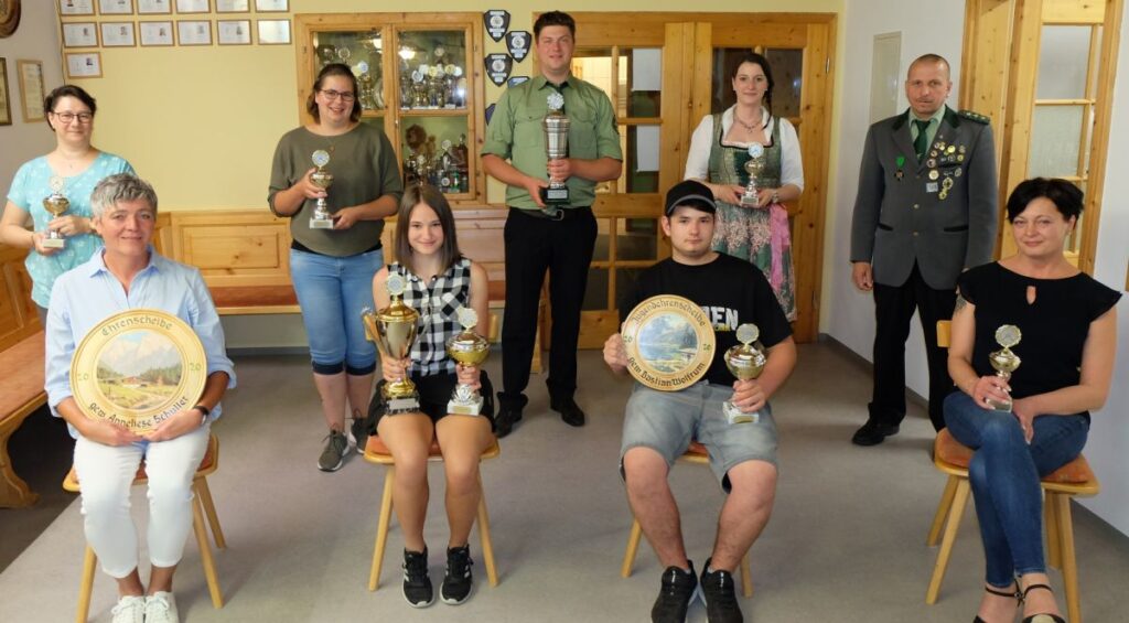 Alexandra Gmeiner, Anna Eckstein, Maximilian Schuller, Claudia Kutzer, Schützenmeister Bernhard Weber